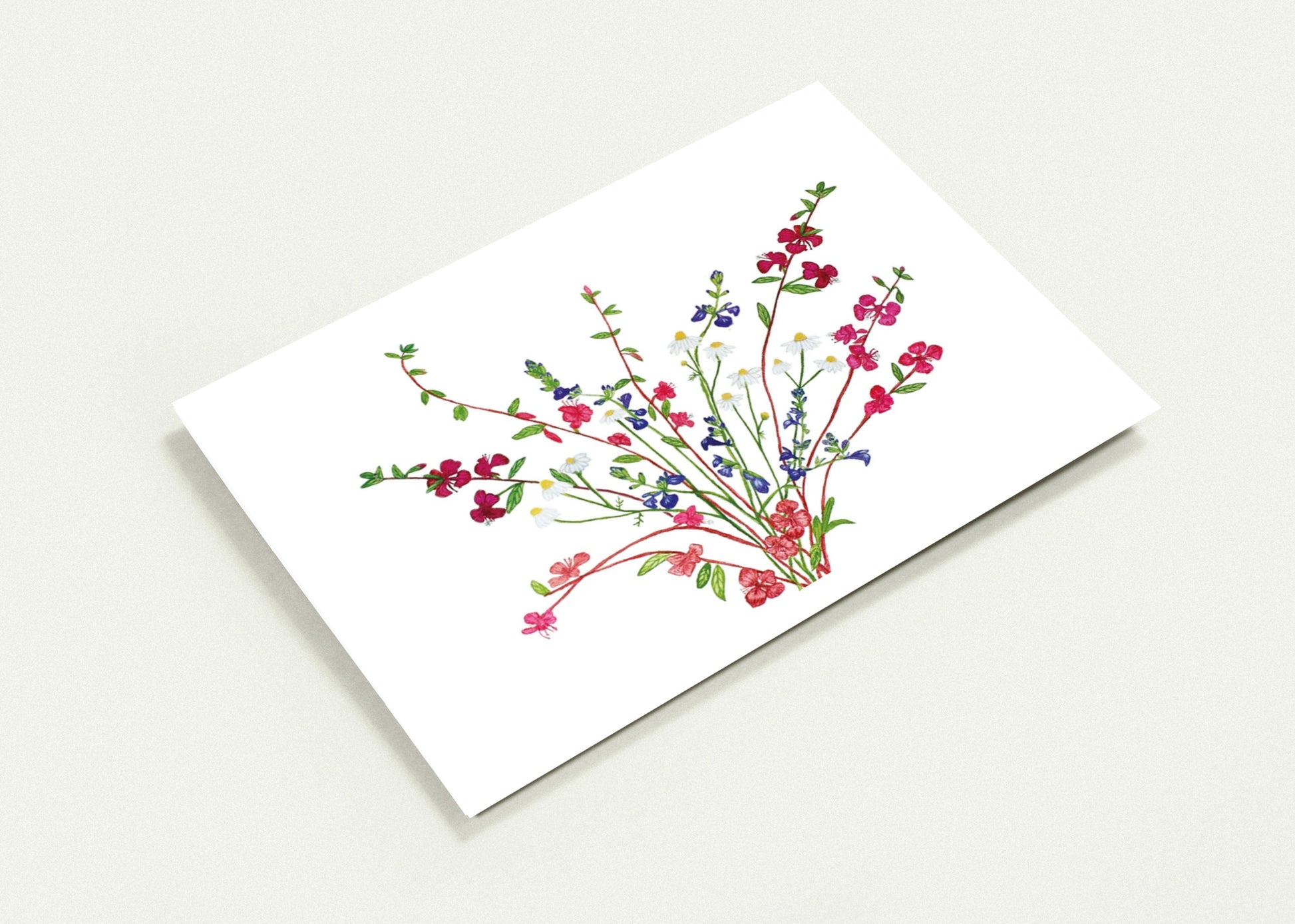 Laura’s Wildflower Garden - These unique floral folded greeting cards and premium envelopes are perfect for sending a little note to someone special. The cards feature a watercolor of wildflowers from Laura's garden. The cards are available in sets of ten 5” x 7" folded greeting cards. Blank inside.