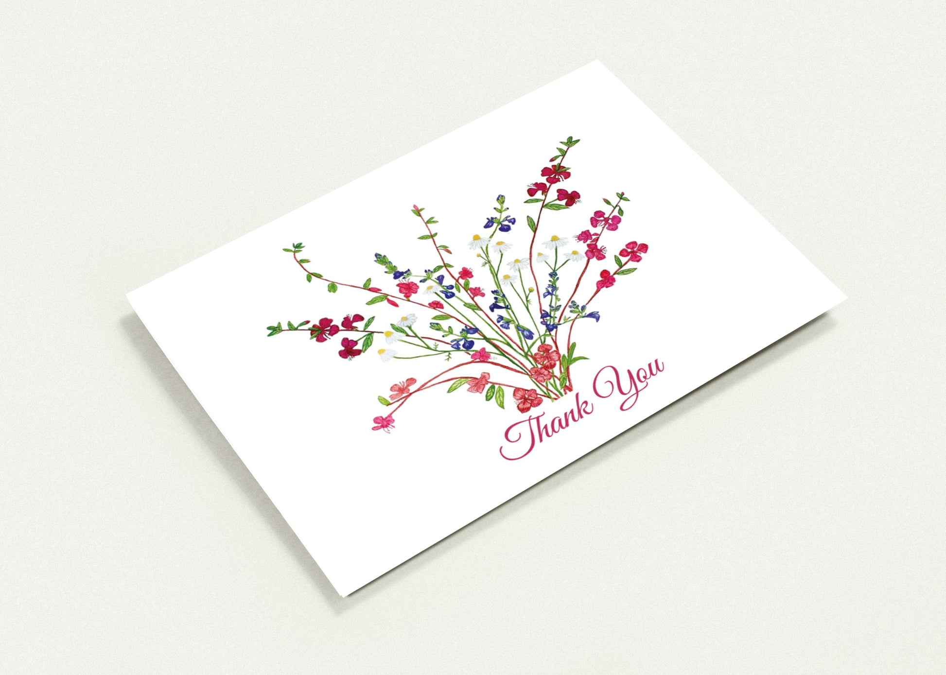Laura’s Wildflower Garden - These unique floral folded greeting cards and premium envelopes are perfect for sending a thank you. The note cards feature a watercolor of wildflowers from Laura's garden. The cards are available in sets of ten 5” x 7" folded greeting cards. Blank inside.